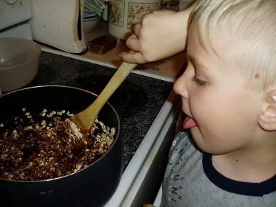 Drop on wax paper and let set. Also makes an awesome science project as asphalt!